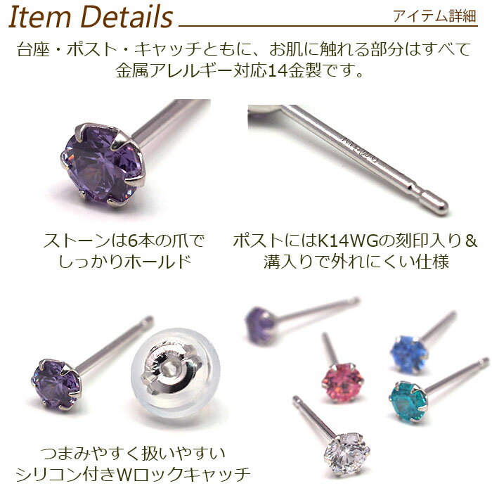 商品名 セカンドピアス ピアス つけっぱなし K14 WG スワロフスキー キュービックジルコニア [4mm]金属アレルギー対応【特針】 サイズ 約4mm 素材(カラー) K14WG(14金ホワイトゴールド) ポスト 太さ:0.8mm 長さ:12mm キャッチ K14WG刻印入り ダブルロック式シリコン付きタイプ\今ここにある特別な贅沢/ K14WG×スワロフスキーの 最上級ピアス! ステンレスピアスで人気NO.1の スワロフスキー社製 ジルコニアの一粒ピアス。