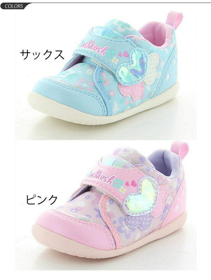 ベビーシューズ 女の子 子ども OSHKOSH オシュコシュ スニーカー 花柄 子供靴 12.0-14.5cm ハート ガーリー かわいい 幼児 女児 カジュアル ムーンスター moonstar/OSK-B430