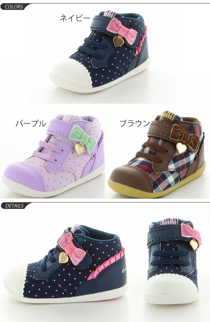 ※メーカー希望小売価格はメーカーカタログに基づいて掲載しています (記載価格が税抜き価格になっている場合もございます) ◆ 商品詳細情報 ◆ ブランド ムーンスター【MOONSTAR】 商品番号 CR-B97 カラー ネイビー、パープル、ブラウン サイズ 12.0/12.5/13.0/13.5/14.0/14.5cm ※重量:片足約100g/13.0cm時 ※ウィズ:2E(標準的な足幅です) 素材 アッパー:綿布/合皮 ソール:合成ゴム ◆ 画像のカラーについて◆ 商品画像のカラーにつきましては、PC、モバイルなど閲覧環境等により実物のカラーと多少異なることもございます。