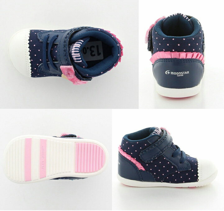ベビーシューズ 女の子 子ども ムーンスター moonstar carrot キャロット ベビー靴 12.0-14.5cm 子供靴 2E(EE) スニーカー カジュアル 女児 チェック ドット柄 ハイカット リボン/CR-B97